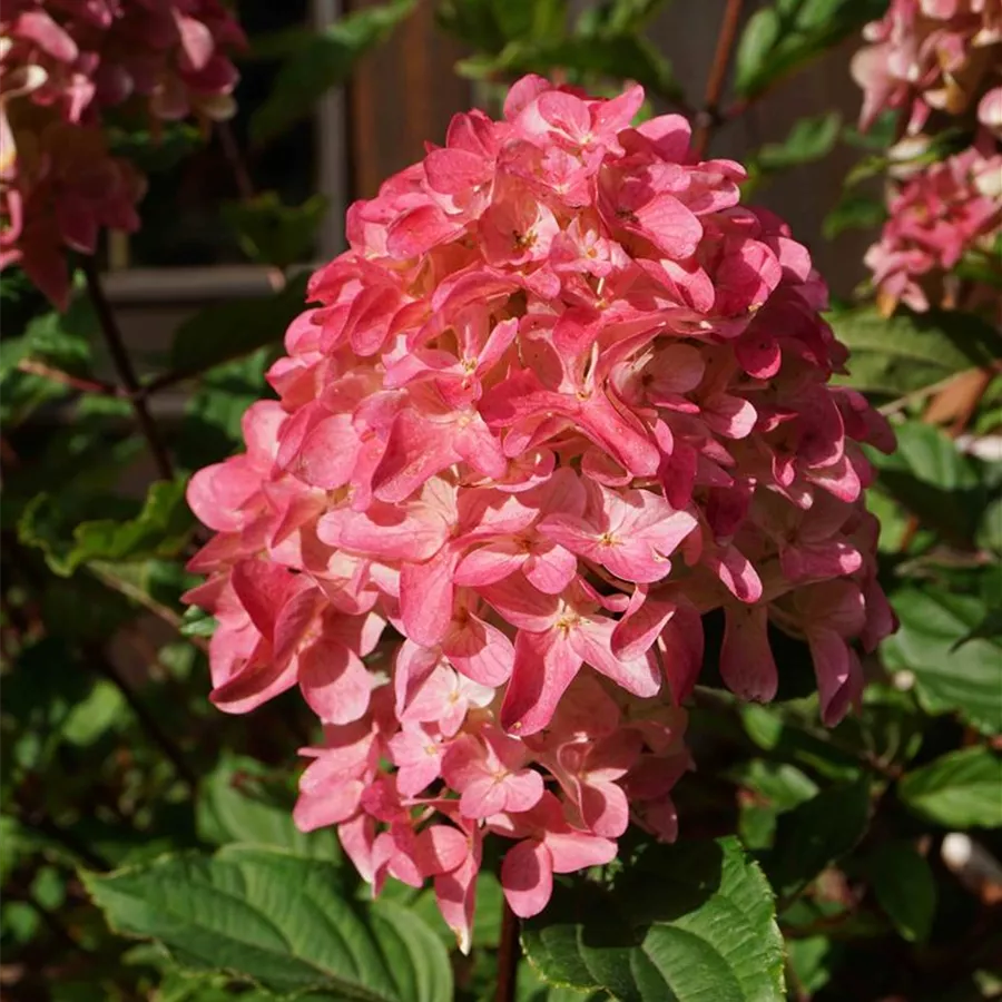 Wenn andere noch grün dastehen, legt ‘Spring Sizzle®’ schon richtig los: Als eine der frü-hest blühenden Rispenhortensien begeistert sie bereits ab Mai mit großen, kegelförmi-gen Blütenrispen in frischem Cremeweiß. Doch das ist erst der Anfang – in Rekordzeit verwandelt sich ihr Blütenkleid über zarte Rosatöne in ein leuchtendes, intensives Pinkrot. Und selbst nach dem ersten Blütenhöhepunkt legt sie noch einmal nach: Dank ihrer Remontierfreude zeigt ‘Spring Sizzle®’ auch im Spätsommer erneut Blütenpracht. Ein echter Hingucker für jeden Garten!