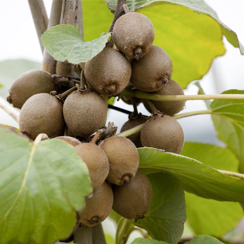Haben Sie einen Pavillon in Ihrem Garten? Oder eine Laube? Vielleicht gibt es auch eine andere Fläche, die Sie botanisch verschönern möchten. Dazu ist die chinesische Kiwi ein idealer Kandidat. Sie schlängelt sich mit ihrem dunkelgrünen Blattwerk gern an einem Gitter entlang. Im Herbst schenkt Sie Ihnen eine wunderbare Frucht, die an eine riesige Stachelbeere erinnert. Die Kiwi ist eine echte Sonnenanbeterin, die recht durstig ist und viel Wasser braucht.
