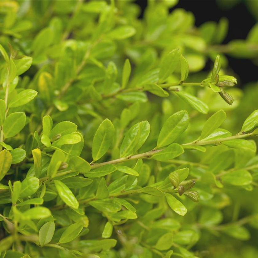 Der dichte Wuchs der wechselständigen Blätter und die Schnittverträglichkeit des Ziergehölzes haben zu der Beliebtheit von Ilex crenata beigetragen. Eine Art, die wegen ihrer leuchtenden Laubfärbung einen hohen Wiedererkennungswert besitzt. Im Fall von 'Golden Gem' weist die Spreite jedoch keine grüne, sondern eine intensive gold-gelbe Farbe auf! Ein wunderschöner Blickfang, dessen immergrünes Laub in die unterschiedlichsten Formen zurückgeschnitten werden kann!